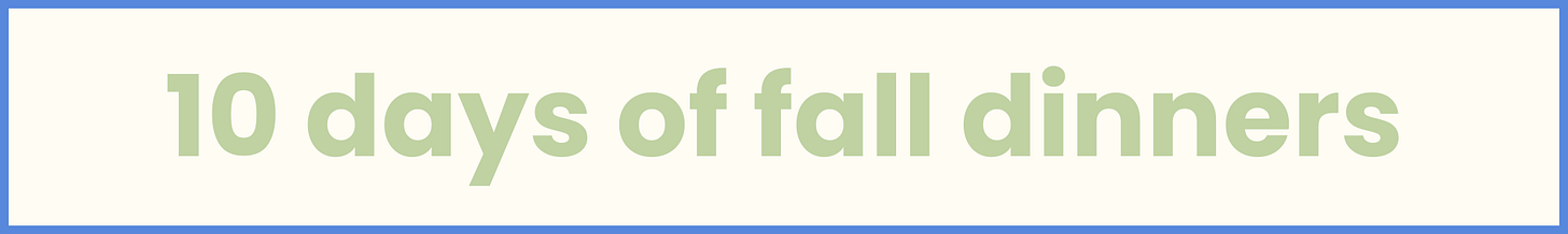 Today officially wrapped up my 10 Days of Fall Dinners series! If you missed a few along the way (or just want them all in one place to reference), this newsletter has every single recipe I shared in the series linked for you in one spot.