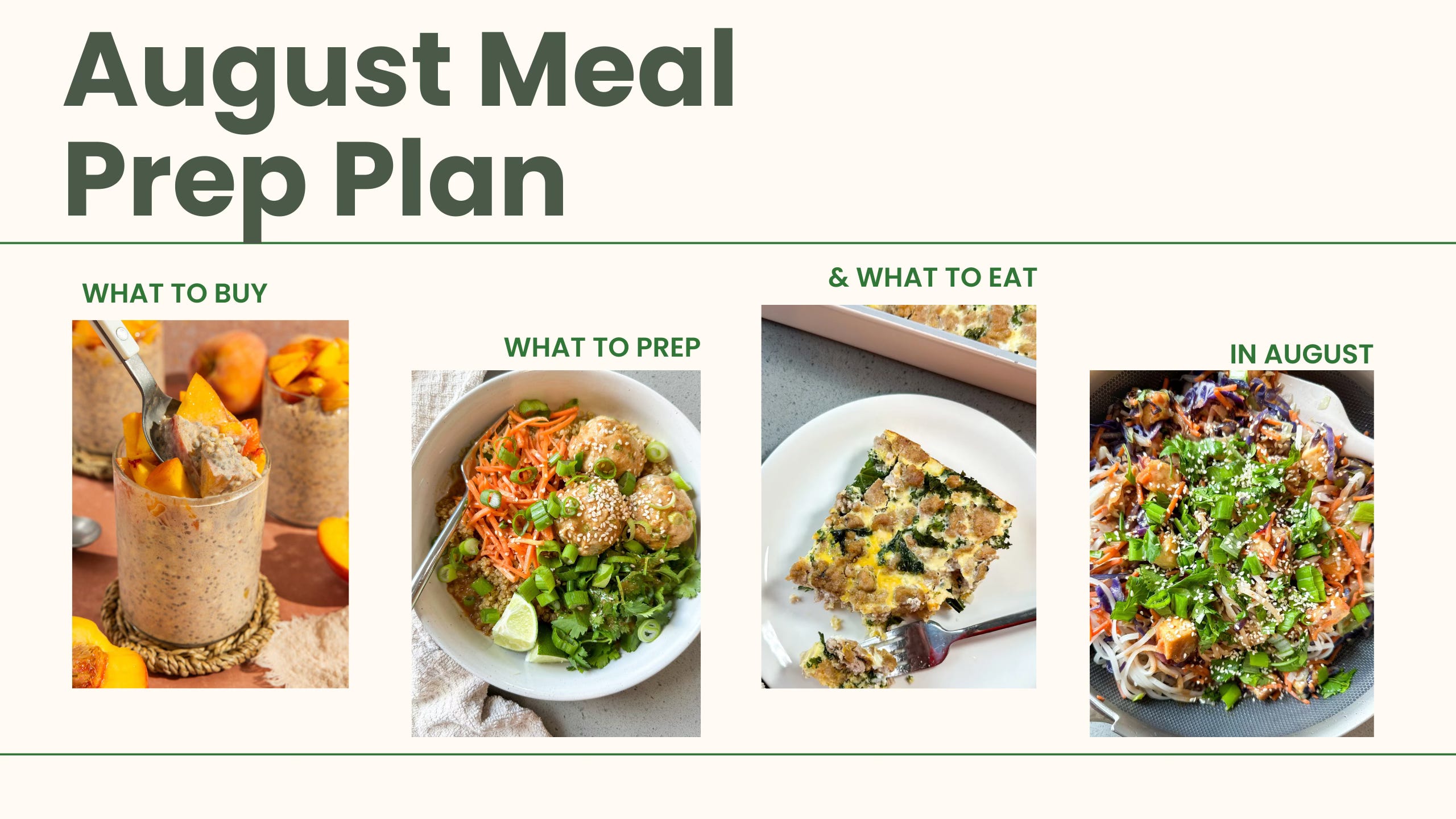 Happy August and happy monthly meal prep plan day!! Summer has been flying by and this month’s prep plan is soaking in the last of the summer seasonal ingredients—think peaches, cherries, basil, corn, and tomatoes, but incorporated into easy-to-prep, protein-packed meals. We’re entering back-to-school season over the next few weeks and I know this can be an especially busy time. Meal planning and prepping might be the first thing to go when life gets overwhelming (believe me, I get it! It’s so hard to manage everything) so this plan is here to streamline the process and save you energy.