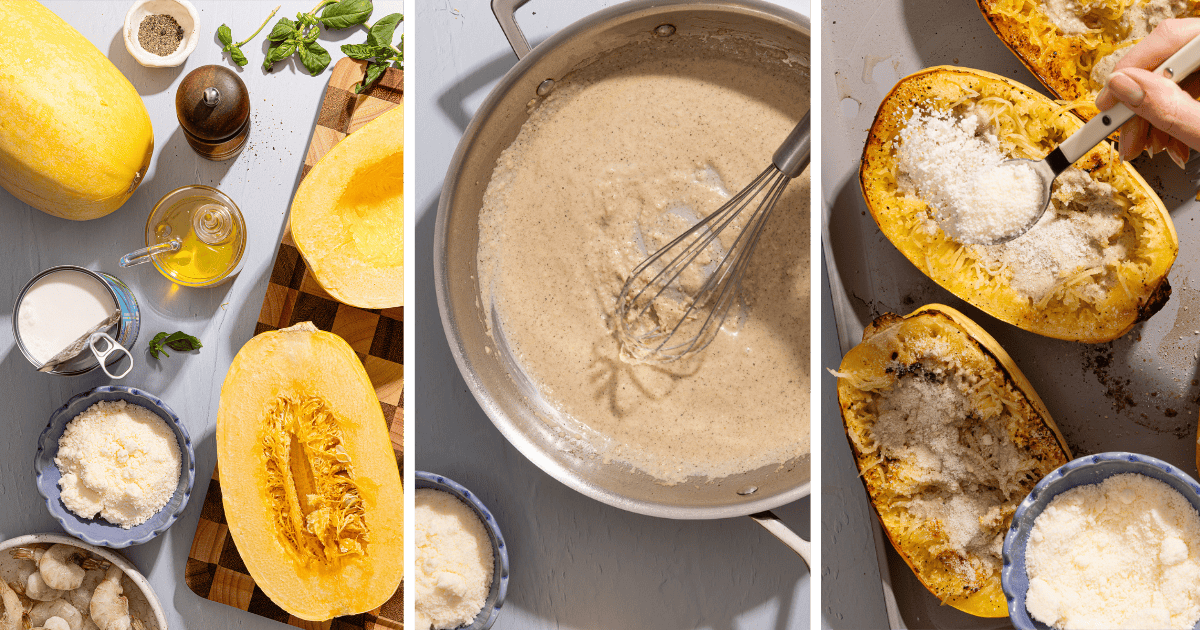Let me tell you about my cacio e pepe-ish spaghetti squash: it’s a light, spring-ready take on the traditional peppery dish for when you want something that feels a little elevated but still fits into a busy weeknight. The squash does most of the work in the oven, and while that’s happening, you’re mixing together a quick, creamy pepper sauce with just a few ingredients. A quick broil at the end brings it all together—nothing complicated, but still so flavorful with cheesy comfort that feels just right for this time of year!