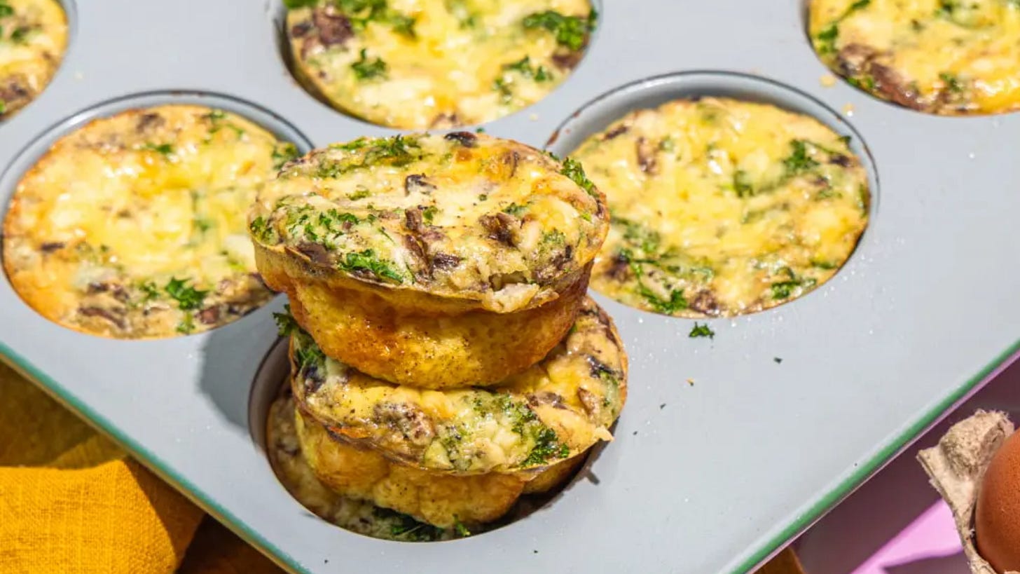 Mushroom and Kale High Protein Egg Muffins — These homemade egg bites are easy to make, perfect for meal prep, and high protein to keep you energized throughout the morning. It’s also such a classic combo that sneaks in extra veggies into your morning. These reheat very well in the air fryer & check out the full recipe for ALL my tips on getting the perfect egg muffins! This is the muffin tin I use—a good non-stick is important!