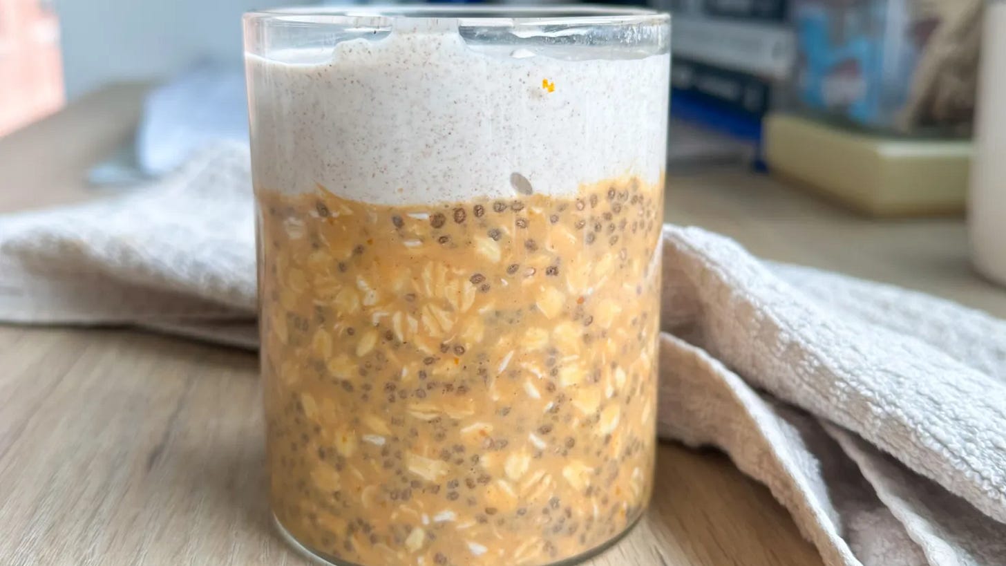 Pumpkin Pie Overnight Oats — I promise this isn’t the start of fall recipes (yet…) These pumpkin overnight oats are just so good, bookmark it for when you’re ready for the pumpkin craze or need to use up leftover pumpkin puree. Don’t skip the yogurt topping here for protein! You can make it ahead for the week too, and pop a spoonful on each morning.