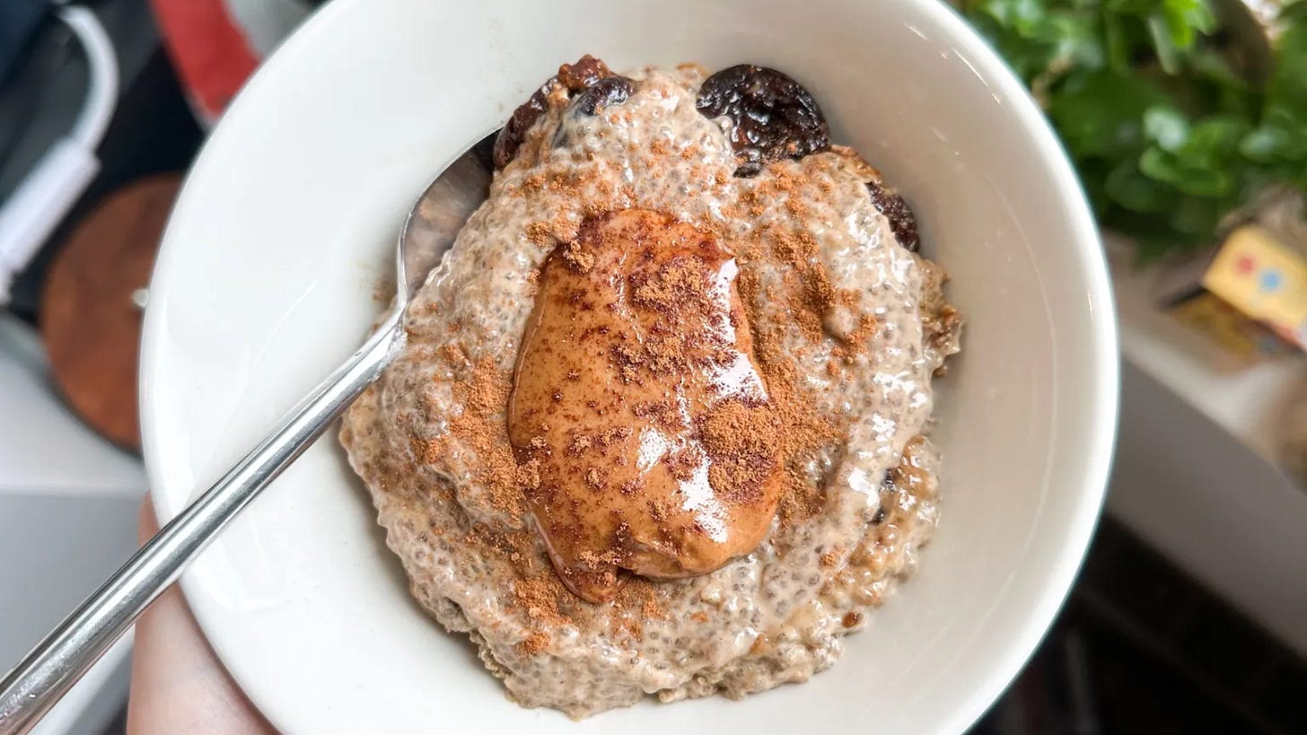 Cherry Pie Chia Pudding — My tried and true cherry pie chia pudding had to make the cut for this series. It’s no secret I love cherries and chia pudding, so combining my two loves into this easy to prep (seriously it takes 5 min to put together) breakfast is the perfect sweet, fiber-packed option to add to your rotation 👏. These are the jars I use to make and store my chia.